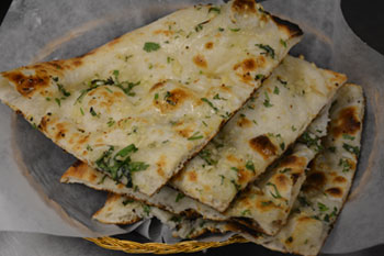 Chopped spinach, cilantro, onions and indian cheese mixed with authentic spices stuffed in naan and baked in clay oven