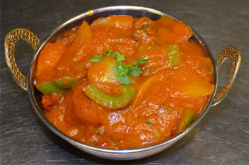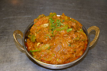 Boneless lamb cooked with fresh tomato, onion, green pepper, ginger, garlic in kadahi sauce and authentic spices