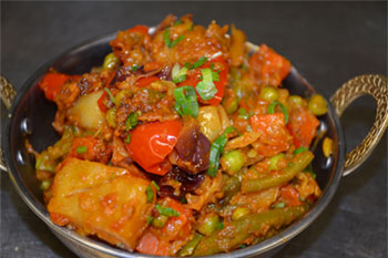 Fresh mixed vegetables cooked in onion, tomato gravy, ginger, garlic and spices