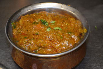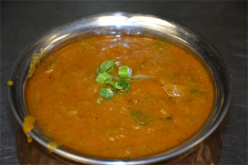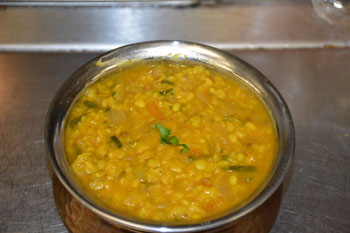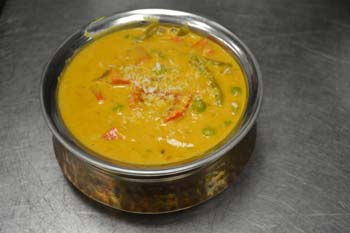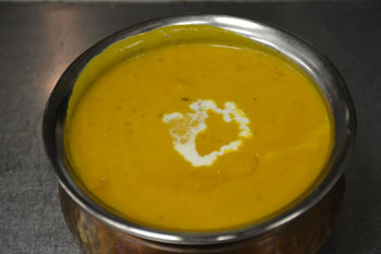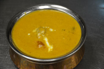 Red & Yellow lentils cooked in authentic spices with fresh tomatoes, ginger, garlic and onion