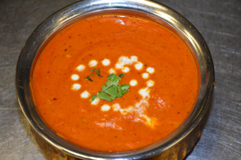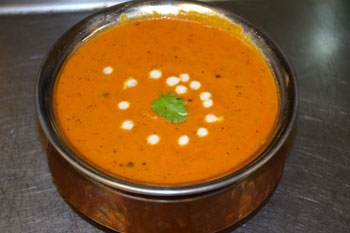 Marinated chicken breast prepared in clay oven then cooked with creamy tomato sauce