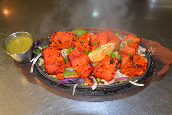 Marinated chicken breast frist prepared in clay oven then cooked with onion, pepper, tomato, ginger and garlic